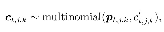 for t corresponding to years from {2002, …, 2012}, with observation variances (σ t,k) requiring priors. Note that in the likelihood, the sums occur over slightly different age cohorts for the two groups, reflecting young males being in the antlerless group with the second additive term. From 2012-present, the spatial extent of the harvest data differs, and is reported at the county level. We will have to scale the harvest by the proportion of the spatial area that is the study area proportion δk scaling the random variable counts, and is defensible because these terms are constant by study area. We can also include knowledge regarding hunter availability across the landscape here in our scaling. Thus, observed antlered individuals are given by